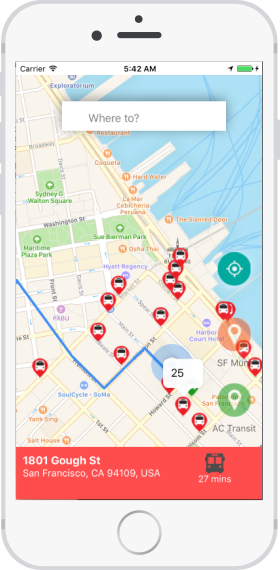 Transitninja is an iOS application that allows users to get public transit directions and track bus locations in real-time. It uses the 511.org API to render bus locations on a map.