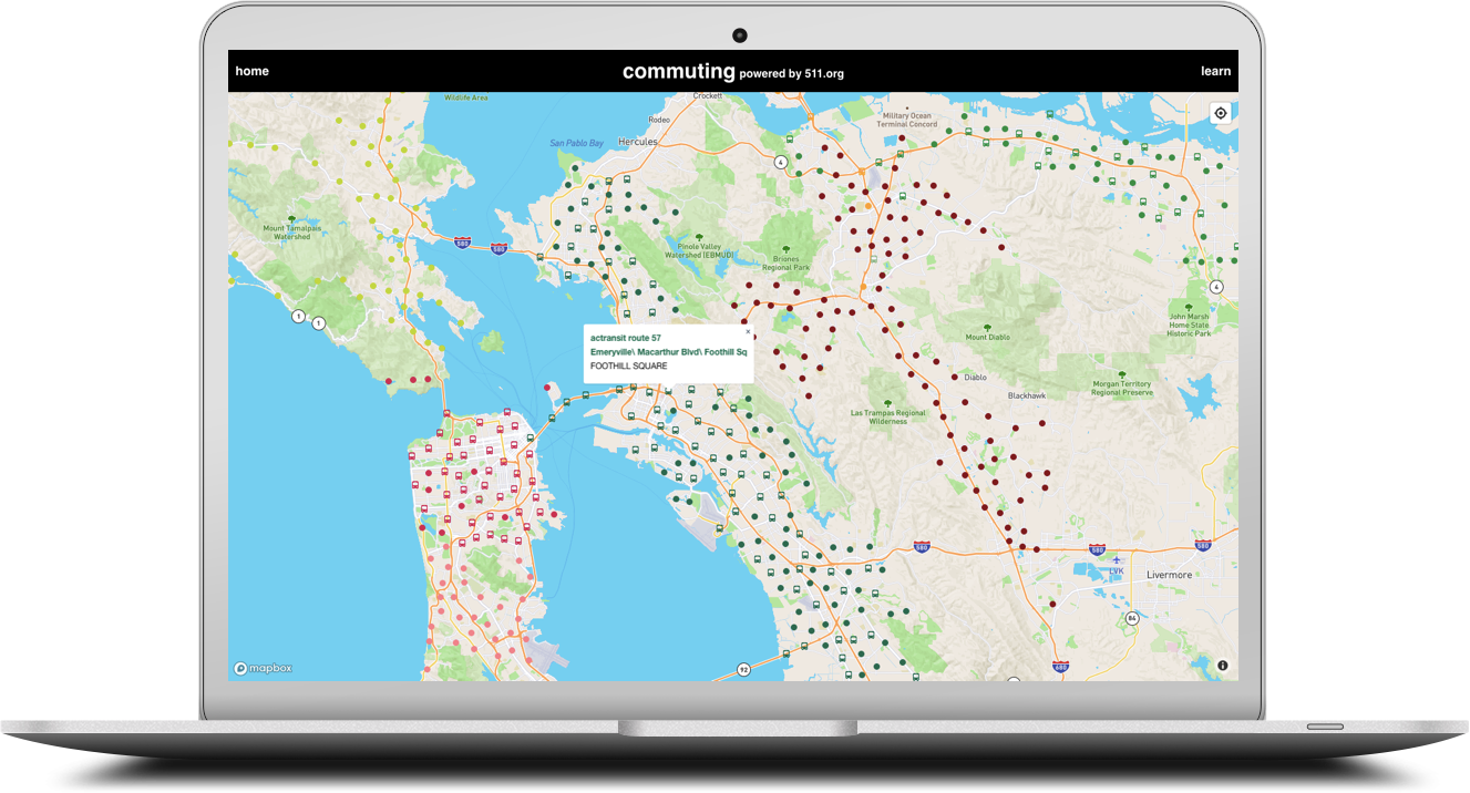 commuting provides users with real-time location of vehicles of various public transit agencies around the Bay Area to visualize how convenient and accessible getting around with public transportation can be!
